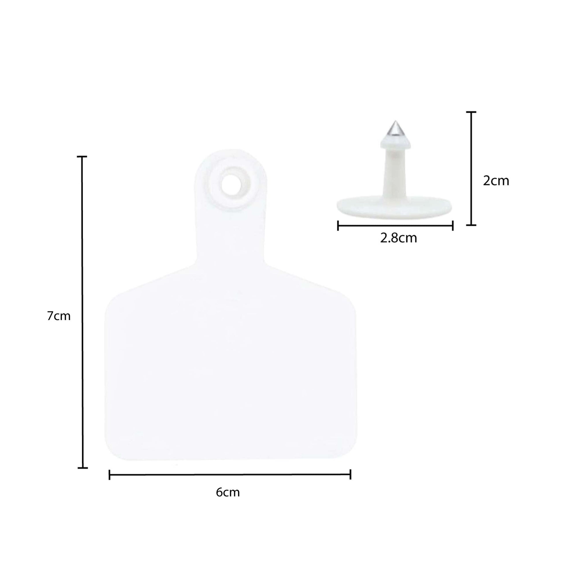 100x Cattle Ear Tags 6x7cm Set - Medium White Blank Cow Sheep Livestock Label