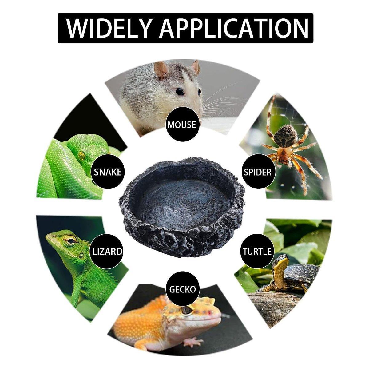 Enhance your pet's habitat with the Reptile Feeding Dish, meticulously crafted from high-quality resin to ensure durability and safety for various reptiles including turtles, lizards, snakes, and more. Its lifelike appearance not only serves as a functional feeder but also adds aesthetic value to your pet’s environment.