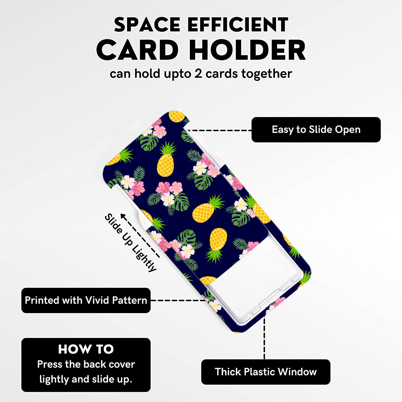 - Secure Card Holder: Hard plastic case holds up to 2 standard cards securely. Easy slide-up access from the back.