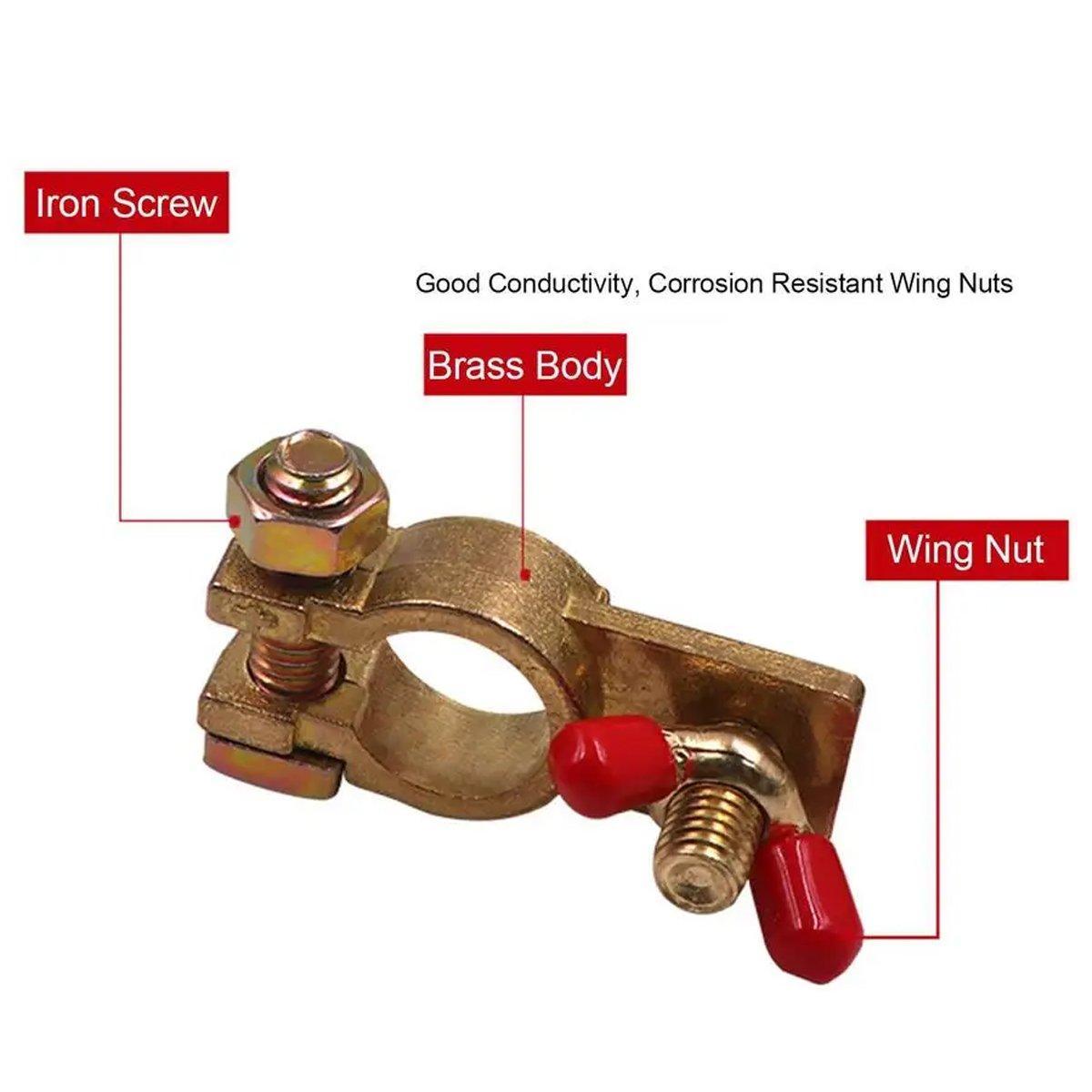 Upgrade your vehicle's battery connection with this 2pcs Car Battery Clamp and Connector Set. Designed for easy installation and secure fit, these clamps are ideal for replacing worn-out battery terminals or setting up new connections. Made from high-quality brass and iron, these connectors offer excellent conductivity and corrosion resistance, ensuring long-term reliability. The set includes one positive and one negative clamp, clearly marked with red and black for easy identification, making installation straightforward and foolproof.