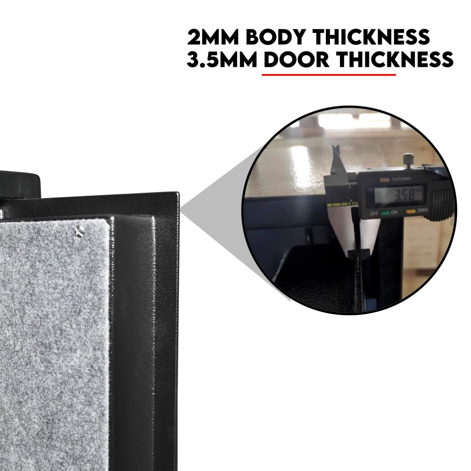 Our gun safes offer configurable e-lock and a high-quality anti-pry alarm system that keeps your gun safes from theft. This firearm storage is made of steel and can fit up to 4 guns, giving it more economical yet high-performing use.