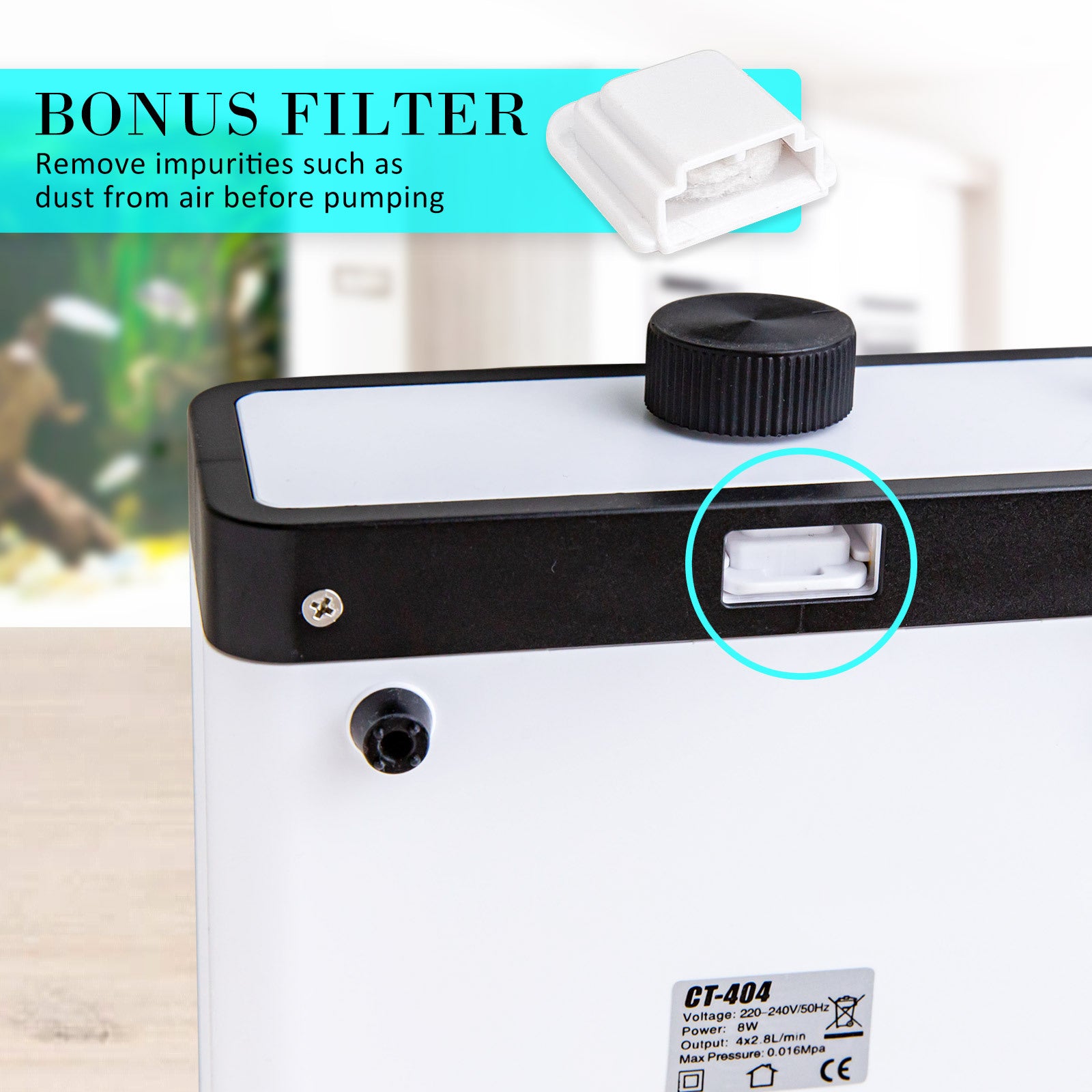 What's more, this air pump is suitable for both freshwater and saltwater aquariums/ponds, providing versatility in its usage. Note that to extend its lifespan, it should be placed in a dry, cool location as humidity can shorten its usable life