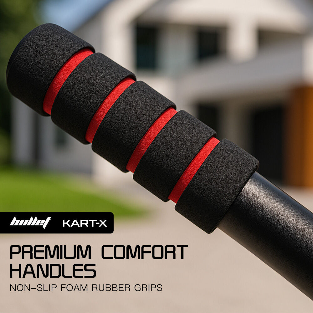 Built on a strong oval steel frame and finished in stealthy matte black, the KART-X is made to handle all the zips, spins, and tight corners your crew can throw at it. From backyard circuits to local parks, you're in total command with dual steering levers that make acceleration, turning, and braking intuitive and responsive. With its adjustable length frame and 80kg weight capacity, it's a perfect fit for kids and teens up to 170cm tall.