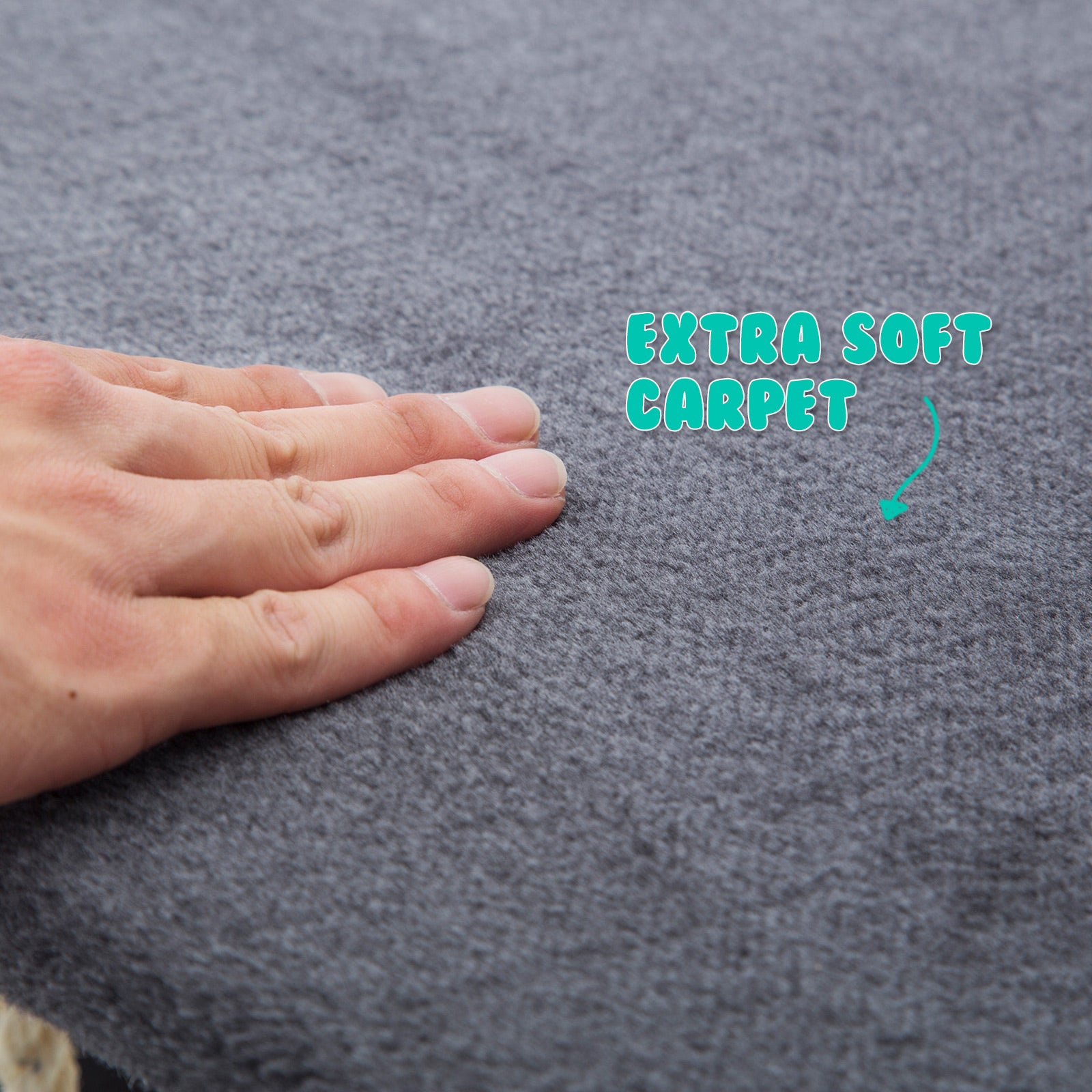- Plush carpet platforms to give your cat comfortable resting/playing