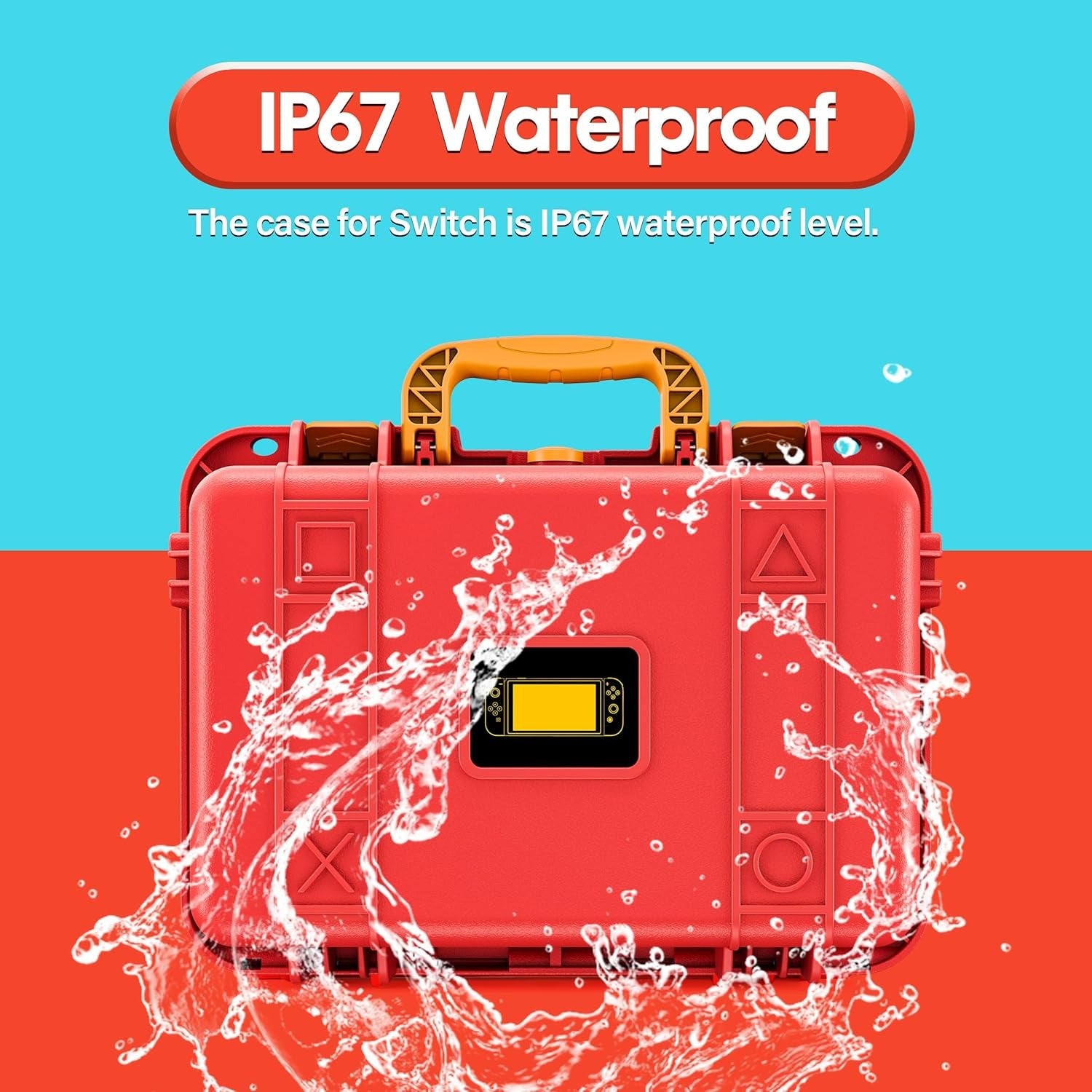 About this item 【TravelStorage】DEVASO Suitcase for Nintendo Switch is perfect for travel and home storage, Specially designed for Nintendo Switch system more portable.The case size is 13.1*10*5.5 inch, the weight is 3.77 Pounds, more portable to take out and travel.Don't be worry will lost the accessories any more. 【Strong Protection】The out of case is made of ABS material,The shell is strong enough to prevent the collision, scuffing and even falling.The case for Nintendo Switch inner is high density sponge,Provite double-stronge protector for intendo Switch from break and scratches. 【IP67 Waterproof】The case for Nintendo Switch is IP67 waterproof level.Could provide the protector for Nintendo Switch about 30mins within 1M underwater.If rainy, the case for Nintendo Switch will protect your device from raining 【Large Capacity】 The Nintendo Switch Case is large capacity, Interior grooves securely hold the Nintendo Switch Console include a Pro Controller, Nintendo Switch Dock, Joy-Con Charging Grip, AC Adapter, Game cartridge,HDMI Cable, Joy-Con Straps etc. 【Special Colors】 The case for Nintendo Switch is special colors,it is designed for Nintendo fans,The different colors of the box are the same as those of joy-con handle