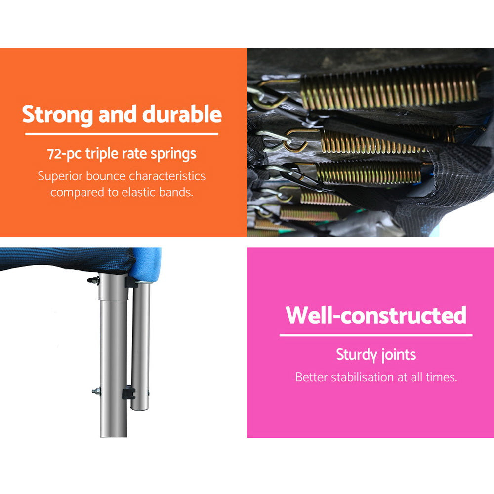 Bounce to your heart's content with our Trampoline. With its superior bounce characteristics featuring 72-piece triple rate springs, the 12-foot trampoline enables safe and durable bouncing with no worries. The heavy-gauge steel framework is designed to handle all robust play and is UV-tested for quality and reliability. Other great features include 8 posts for strong support, 20mm thick padding, anti-graze mat, safety netting and a double-lock zip-and-clip entry. So jump to it and order our trampoline today.