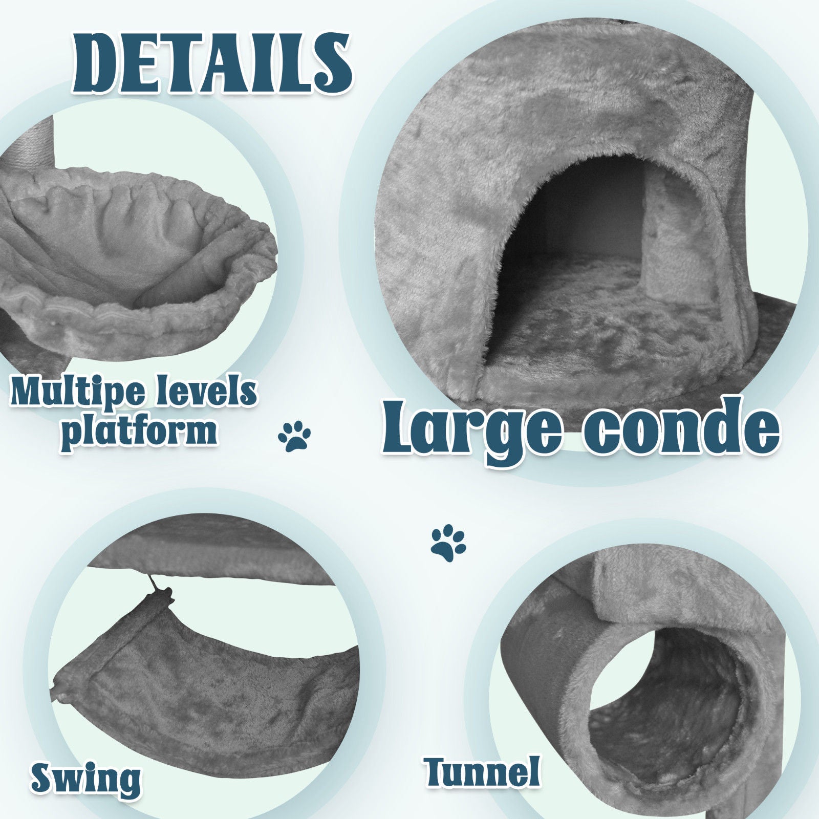 - Multi-level design with plush condos & sisal posts, perfect for climbing, scratching & lounging.