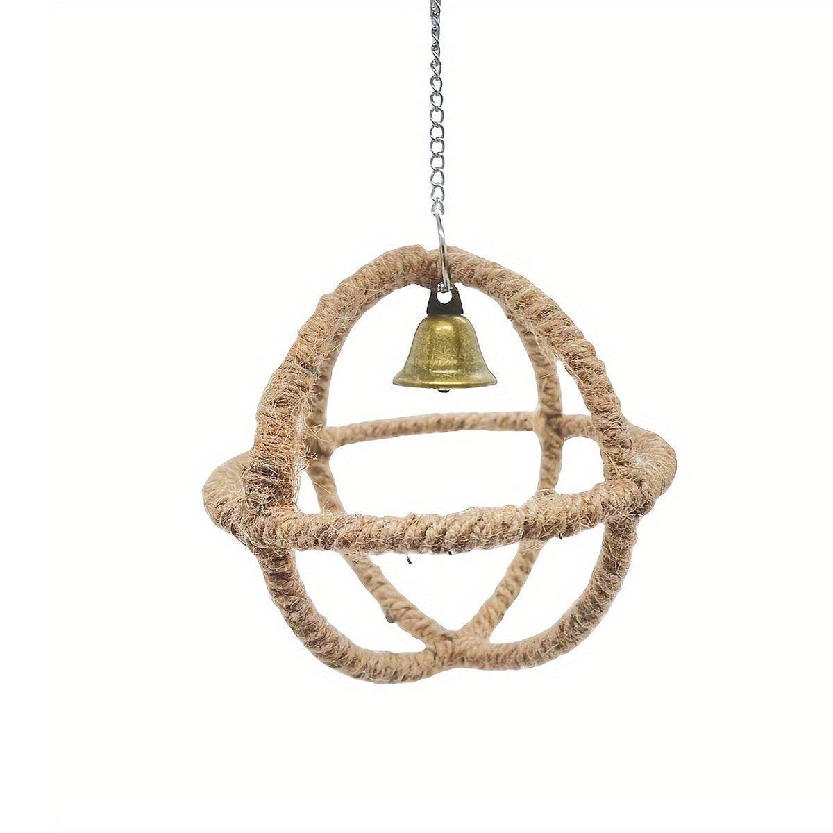 1 x Parrot Toy with Ball Ring and Hemp Rope