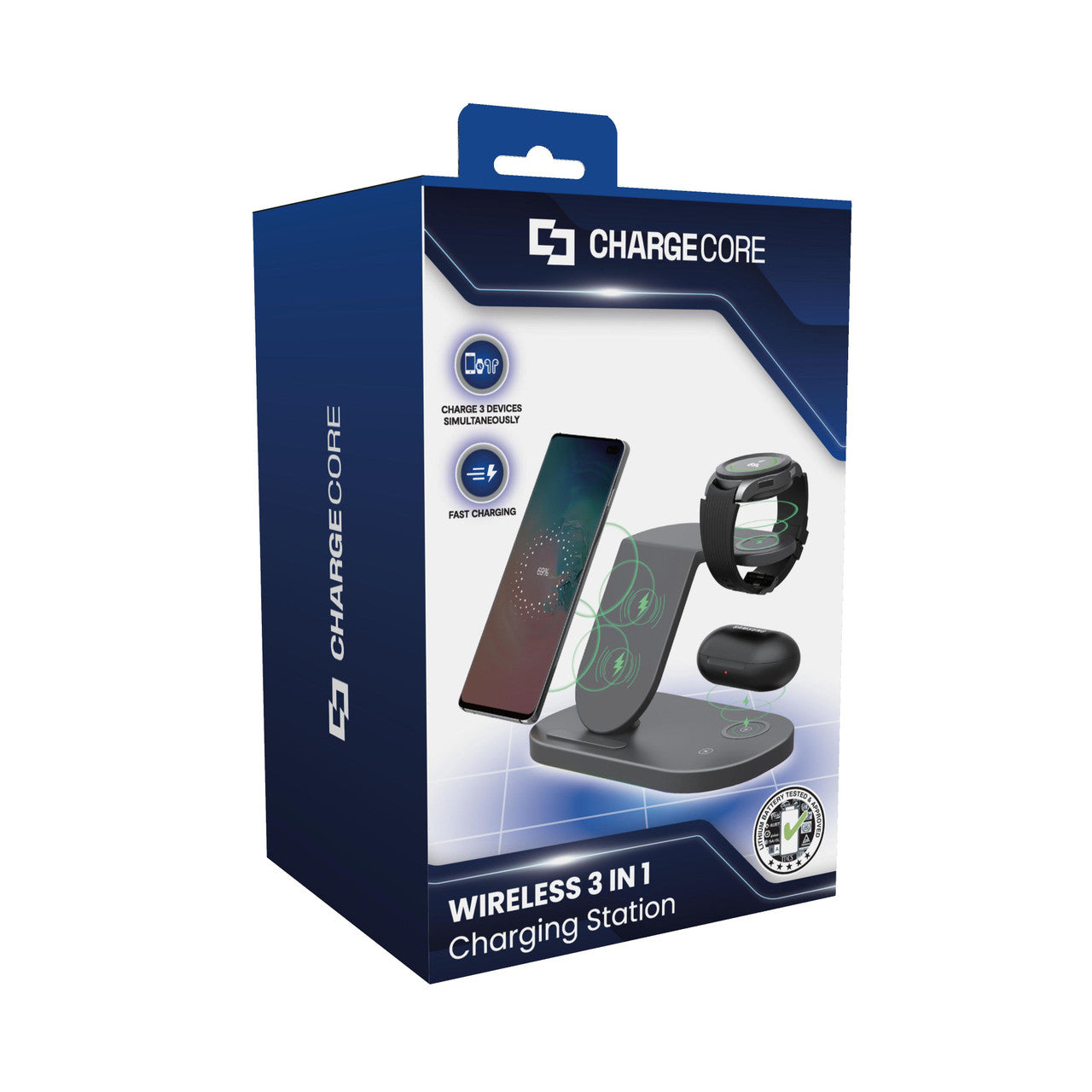 The Laser 3 in 1 Wireless Charging Station is the perfect solution for charging your smartphone, Galaxy Watch, and wireless earbuds simultaneously. Designed for efficiency and convenience, this charger eliminates the need for multiple cables, offering a sleek and space-saving solution for your home or office.