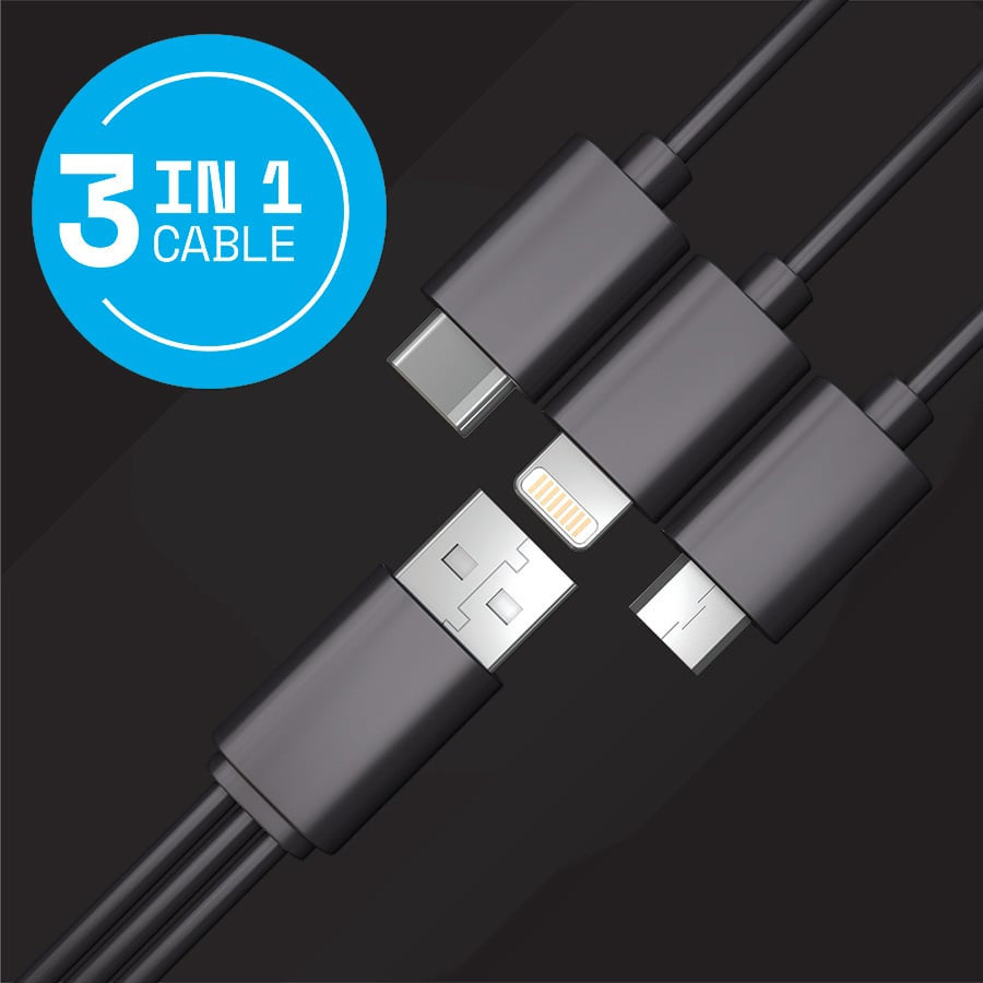 - 3-in-1 Cable Included: Includes Lightning, USB-C, and Micro USB connectors