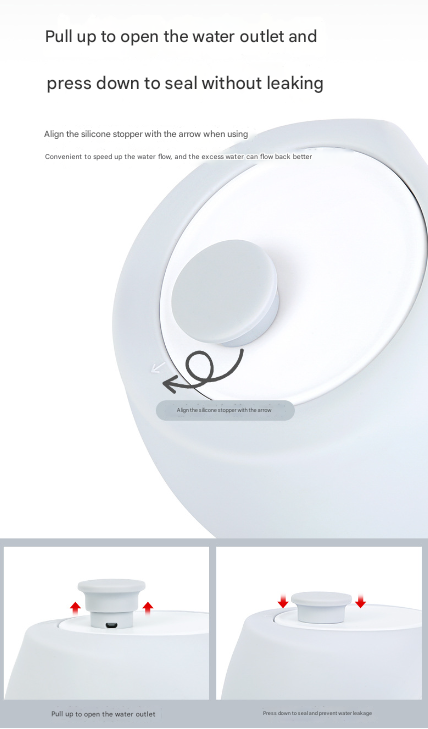 - Leak-Proof & One-Hand Operation: Features a secure press-button mechanism. Pull up to open the water outlet and gently press the bottle to dispense water into the bowl. Press down the button to seal the outlet, preventing any messy leaks in your bag. Designed for easy one-handed use.