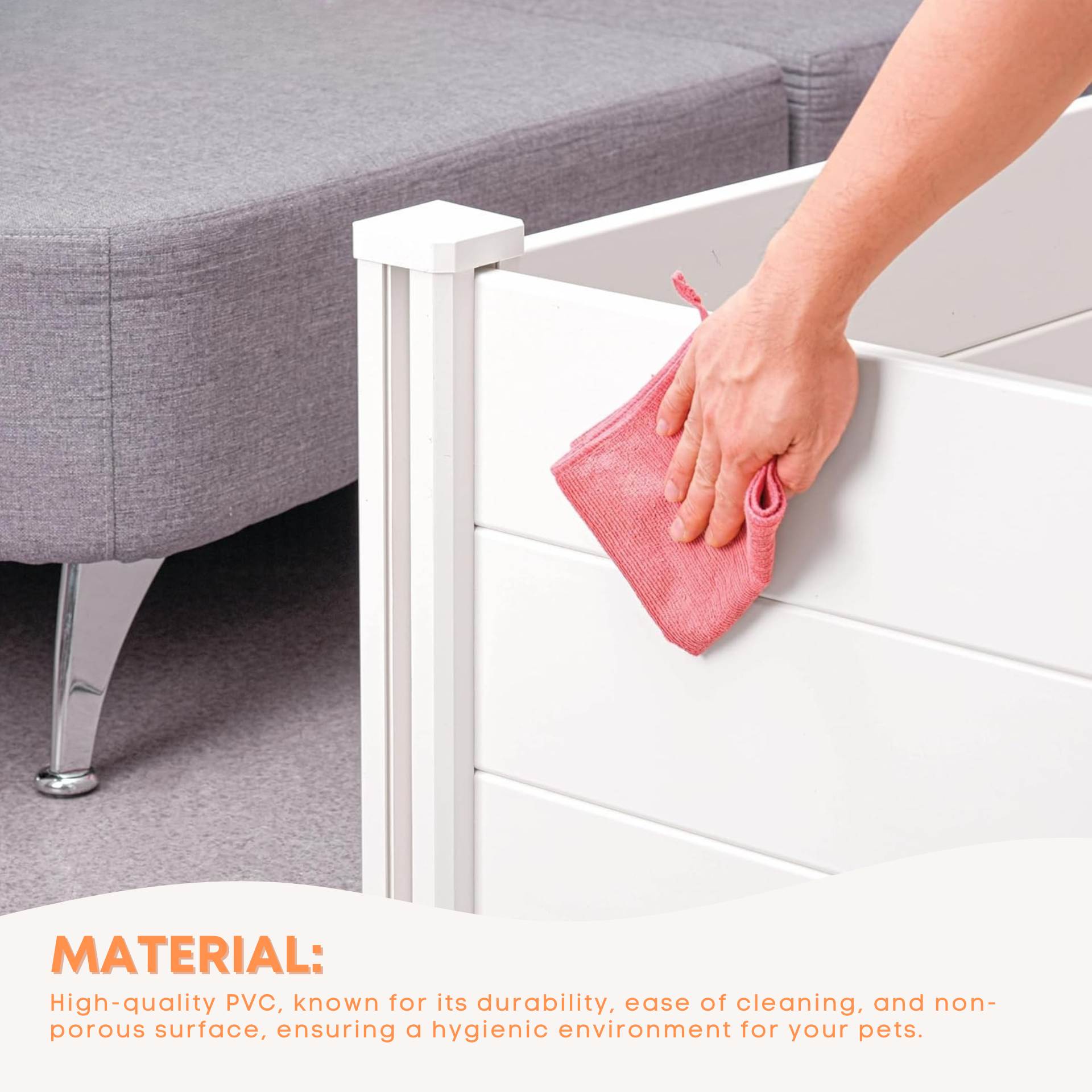 Ensure a safe, hygienic, and comfortable space for mothers and puppies with our Rooster Farms Deluxe PVC Whelping Box and Playpen Kit. Made from durable, non-porous PVC, it is easy to clean, UV-stable, and built to last. The box features integrated anti-crush rails to protect puppies, and adjustable entry slats that let mum in and out while keeping puppies secure. A connected playpen provides extra space for puppies to explore safely. Flat-packed for quick tool-free assembly, the modular panels and connectors make it simple to set up or store. Ideal for breeders or pet owners preparing for new arrivals.