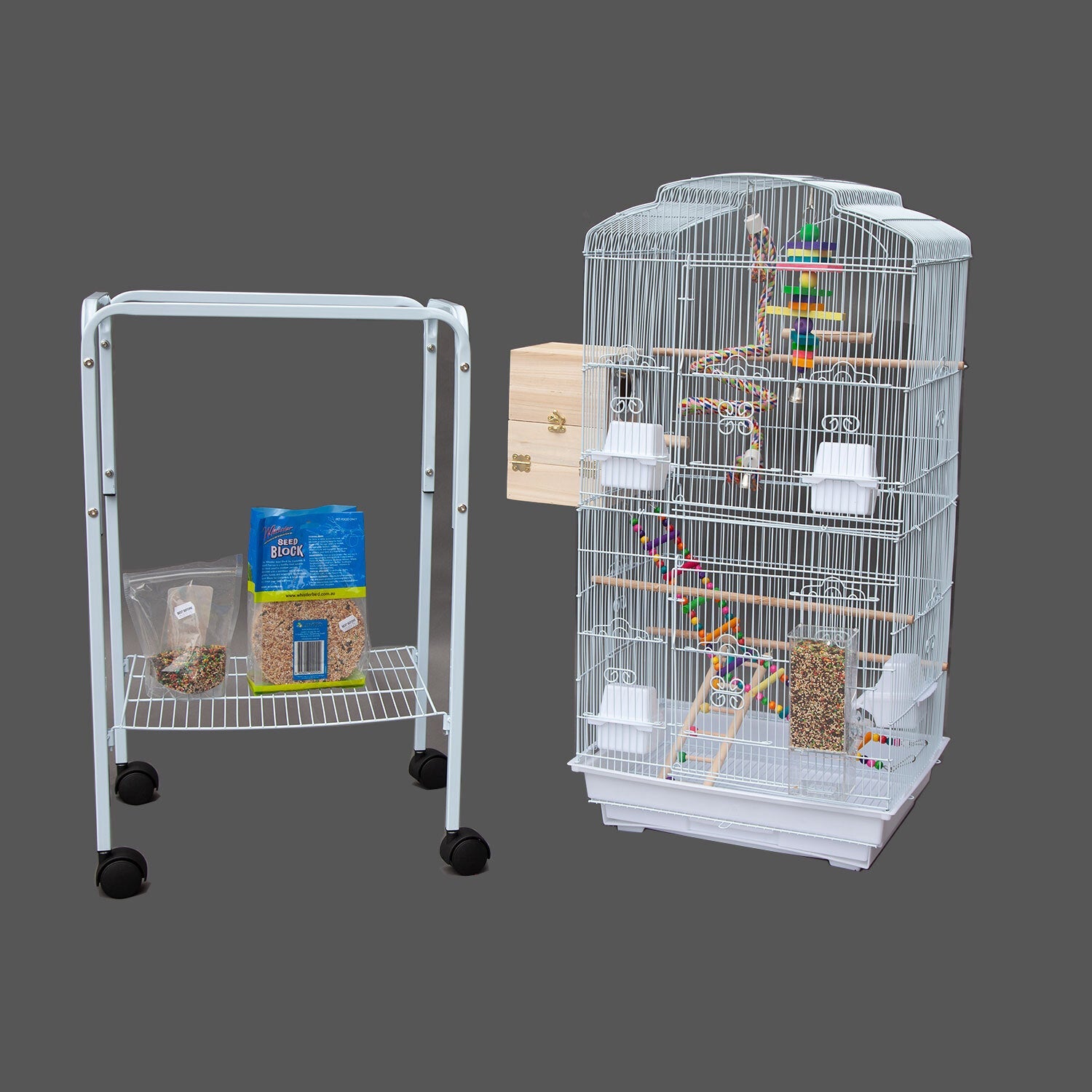 Samland DOME TOP HIGH BIRD CAGE ON STAND WITH PLAY TOYS WHITE