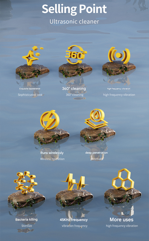 Experience a professional-grade clean from the comfort of your home. Our portable ultrasonic cleaner uses powerful 45,000Hz sound waves to create millions of microscopic bubbles that gently yet effectively remove dirt, grime, and oils from the tiniest crevices of your belongings without any harsh chemicals or scrubbing.