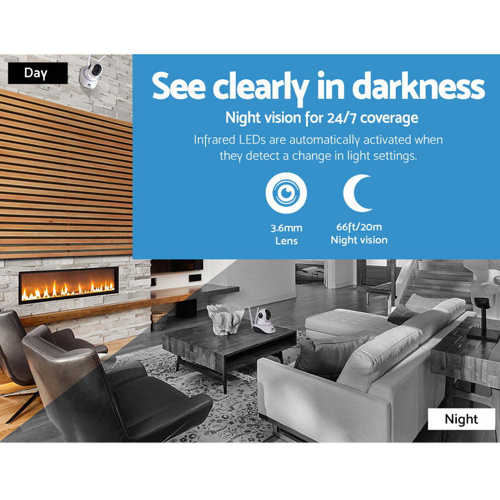 These include HD 2.0 megapixel 1080 resolution, clear day and night vision, smooth pan and tilt monitoring, and P2P remote access support. Motion detection can be customised and with the free apps, you can also view the pictures on your phone or computer. Not least, the Camera also has data protection during power outages and up to 128G recording on a TF card for easy playback. Set up is simply plug and play with a Wi-Fi connection and your purchase comes with all the necessary accessories.