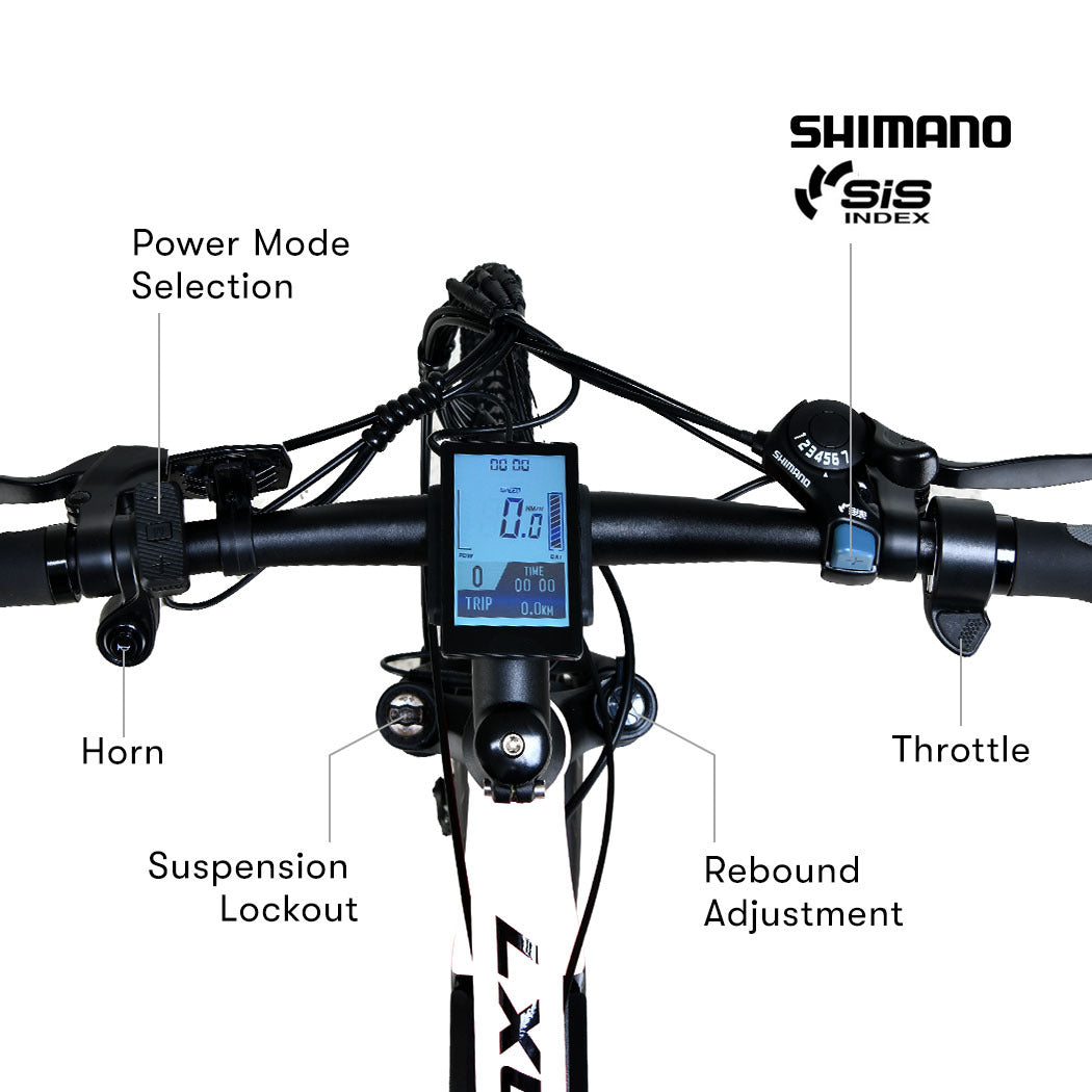 - LCD Display: Speed, Power Assistance Level, Distance, Battery Charge