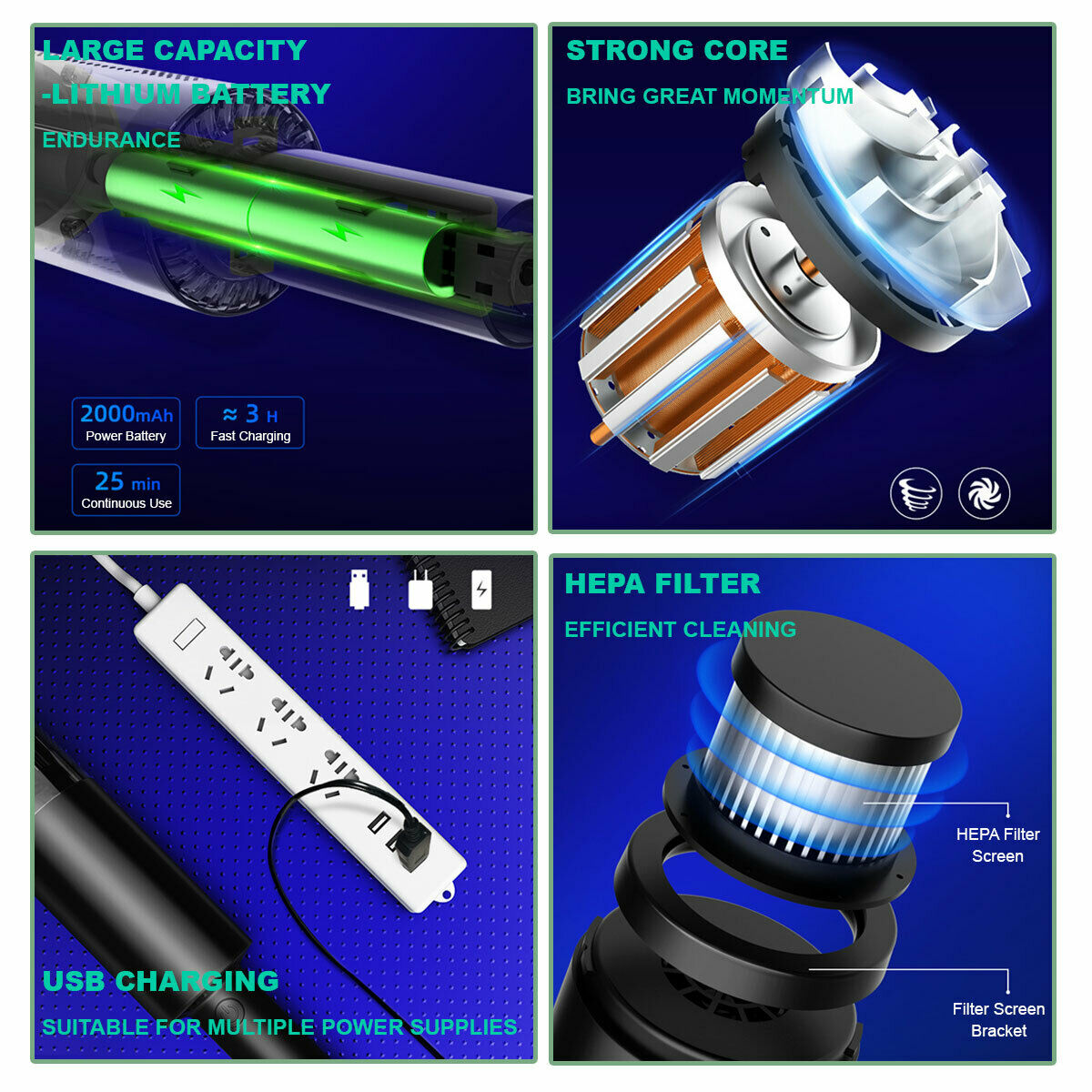 Powerful Suction: With a rating of 6000Pa, this vacuum cleaner delivers powerful suction to clean car interiors, carpets, furniture, and hard-to-reach areas.
