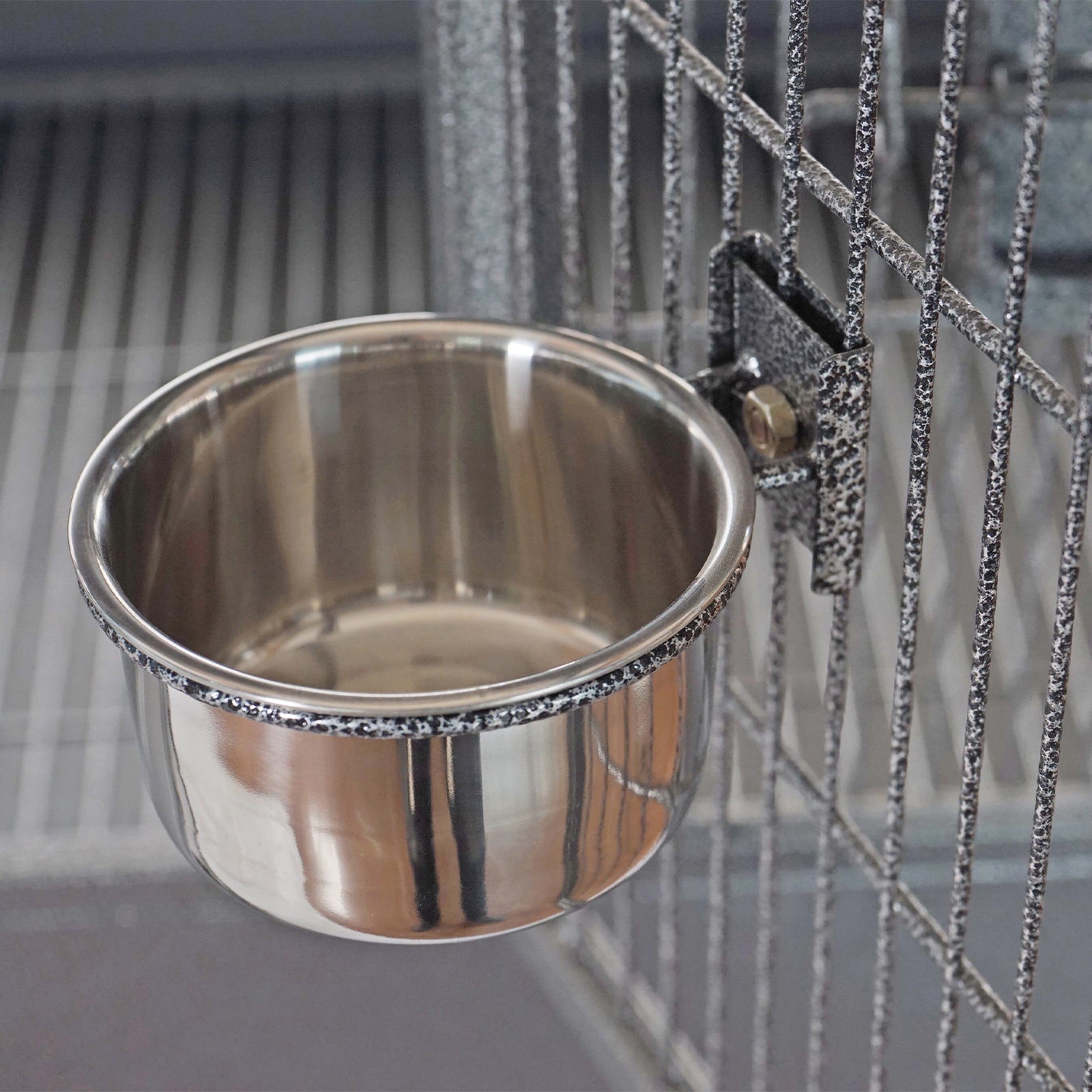 - 2 Stainless Steel feeder bowls with swivel gates in each cage.